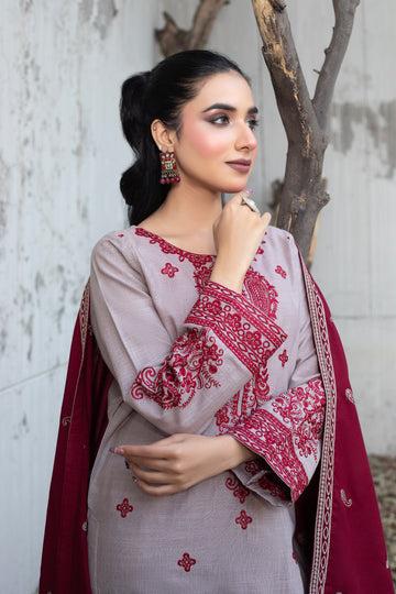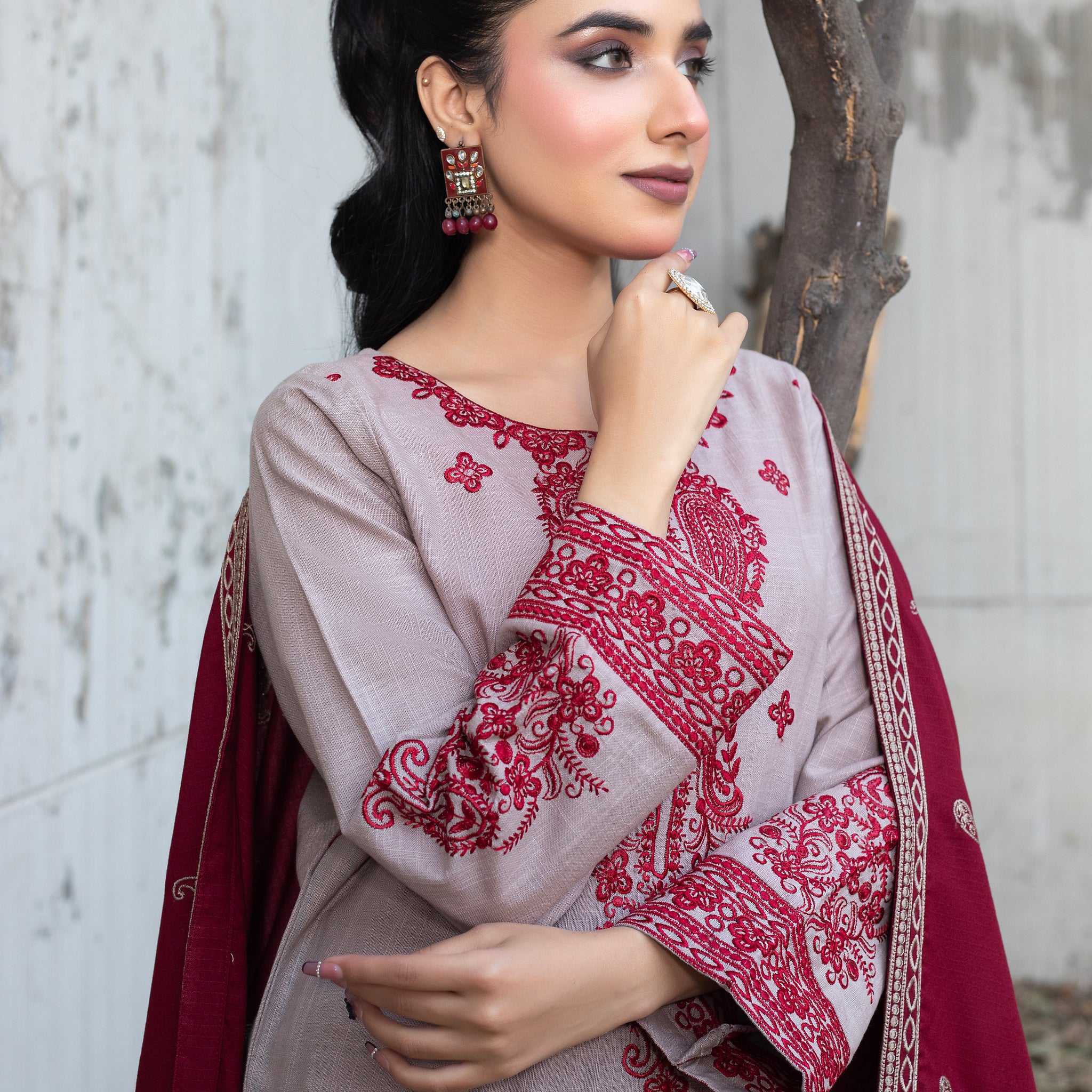 A refined olive-toned 3-piece embroidered ensemble designed to blend traditional charm with everyday elegance. The...