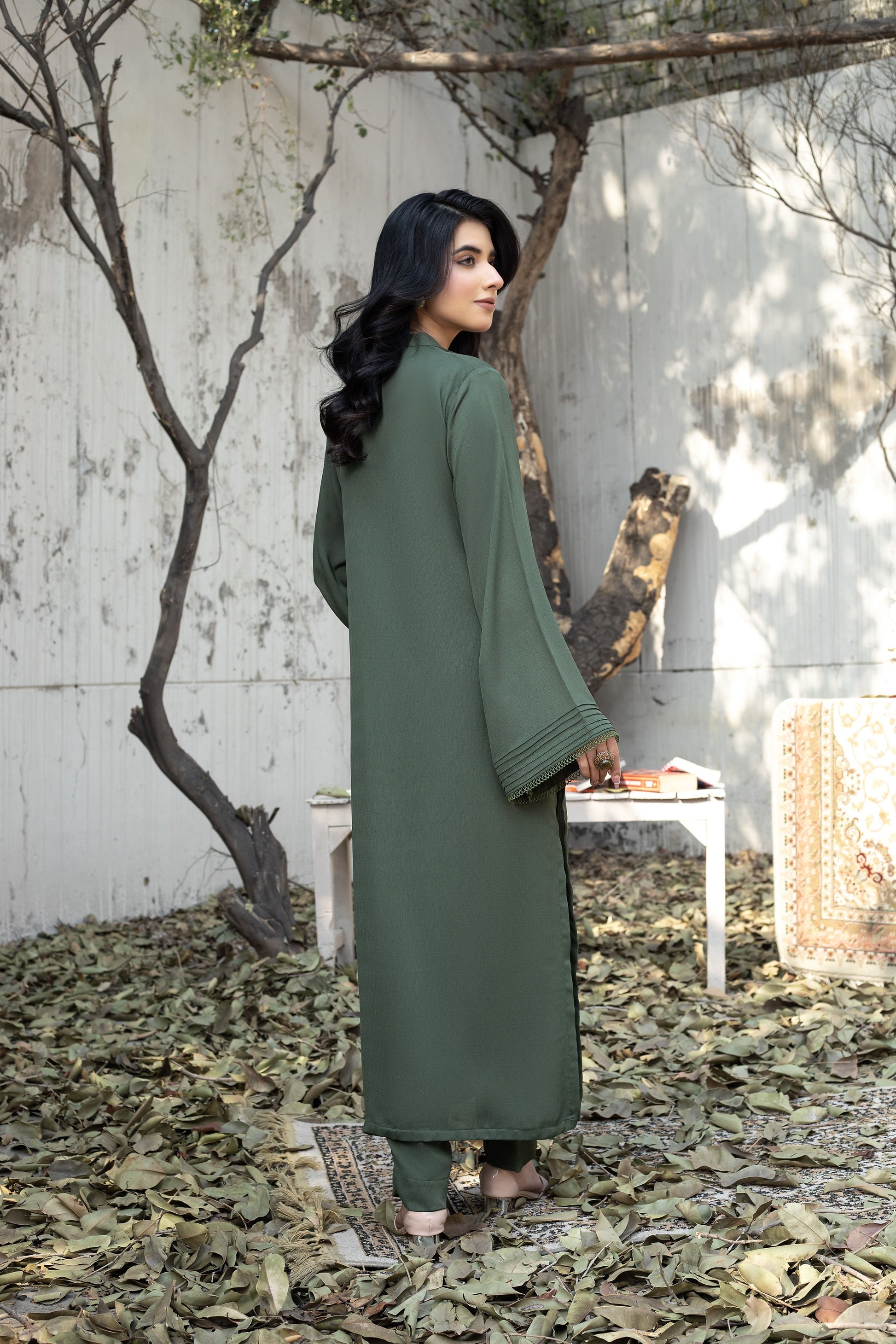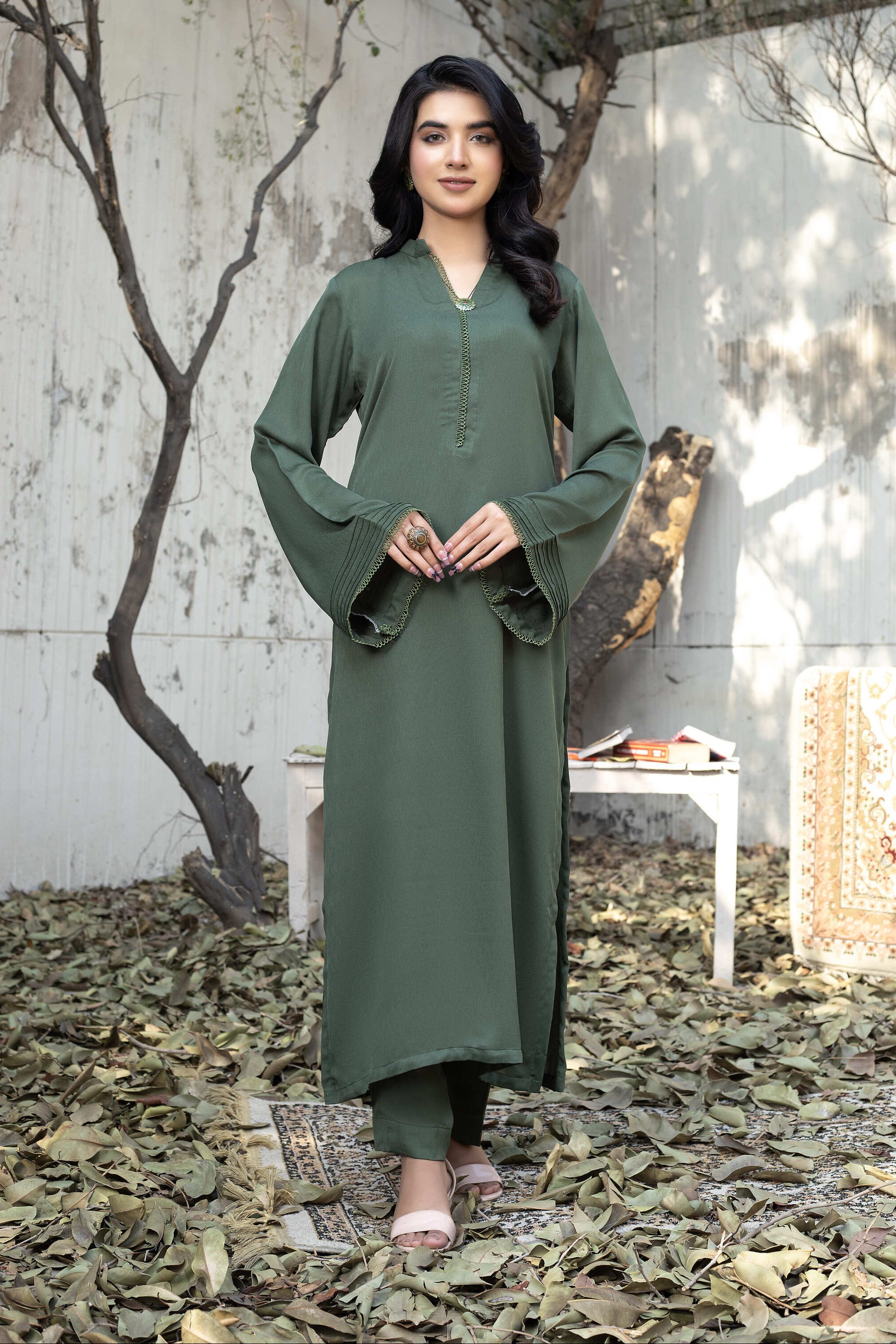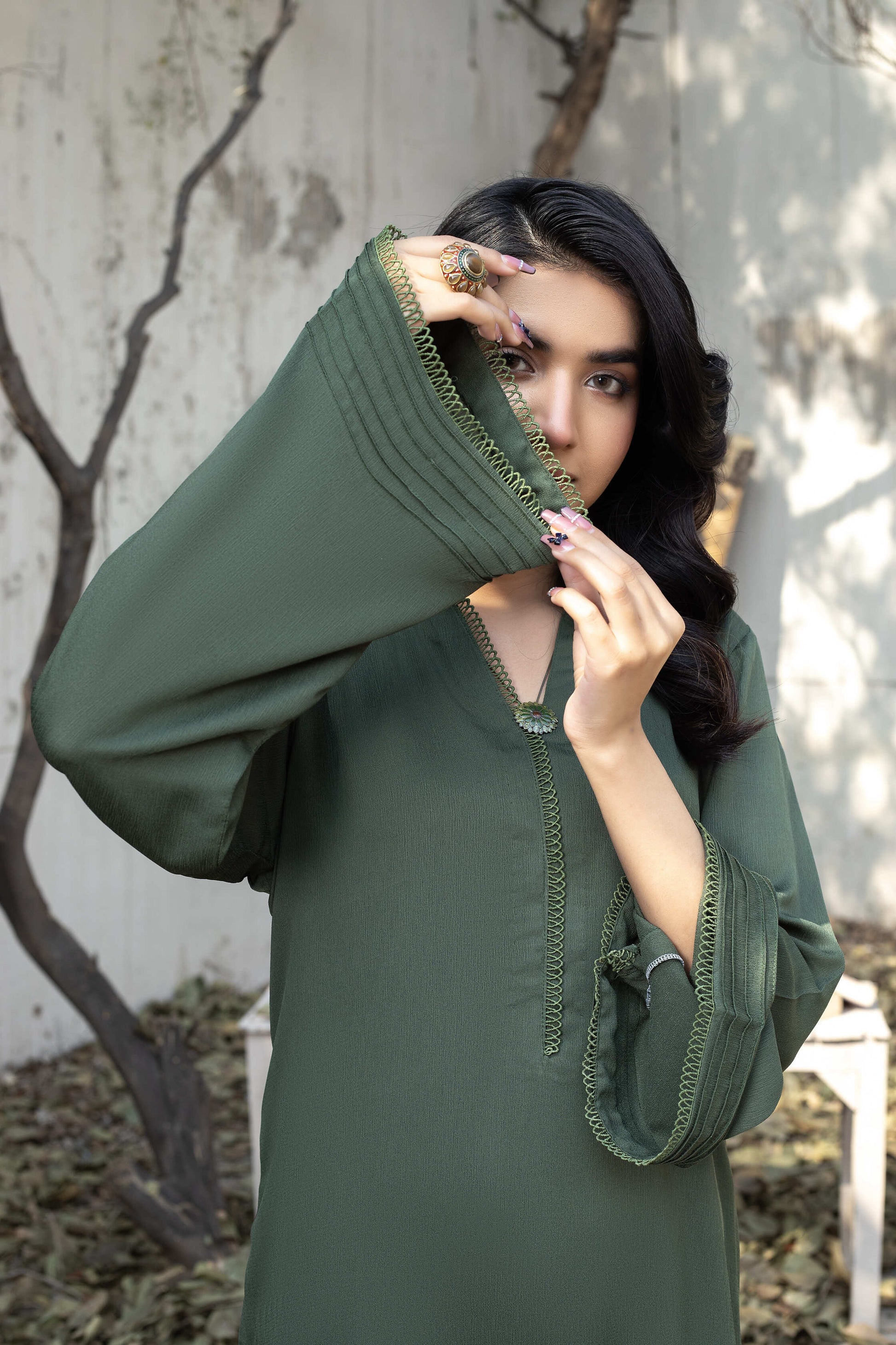 A graceful Olive-green 2-piece outfit designed to bring effortless elegance to your everyday wardrobe. The long, straight shirt features a mandarin collar with a laced slit and beautifully flared sleeves. Paired with matching straight trousers, this ensemble offers comfort, style, and a timeless charm. Light, breathable, and versatile, it’s perfect for casual outings, coffee meet-ups, or relaxed gatherings. Style it with simple jewellery and nude sandals for a clean, polished look.